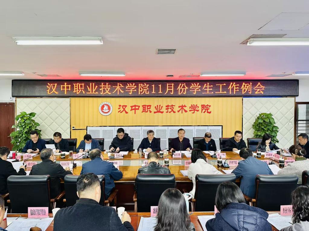 2025年11月6日下午,汉中职业技术学院召开11月份学生工作例会,学院党委书记李志刚出席会议并讲话,党政办、组宣部等部门负责人和各二级学院党总支书记、学管办主任、专职辅导员,学工部(处)副科级以上干部,物业公司负责同志参加会议,会议由党委委员、副院长张仕锋主持。